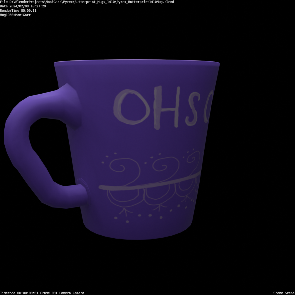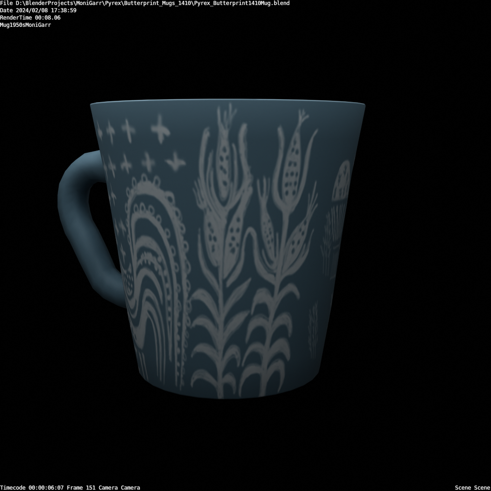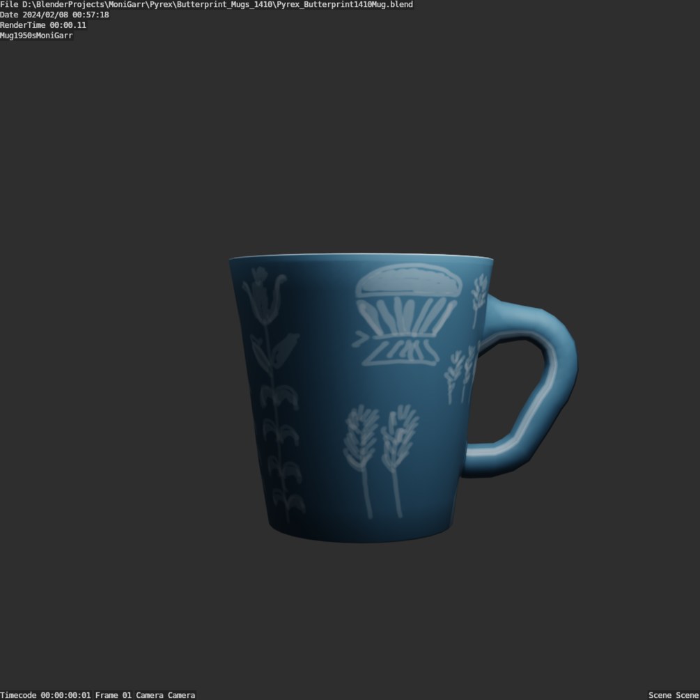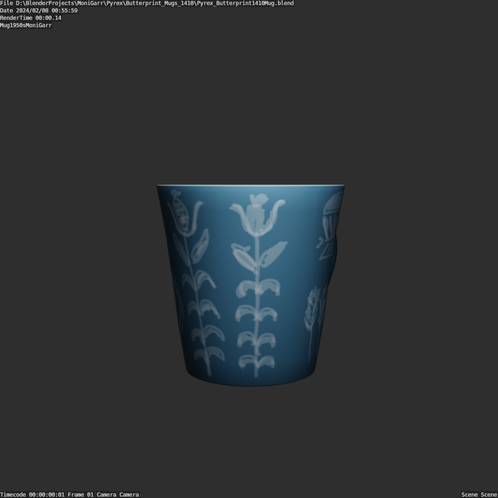 This 3D model design by MoniGarr is inspired by 1950s Pyrex mugs with the butter print design.